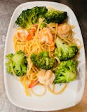 Large shrimp cooked in marinara sauce, olive oil, & fresh basil.